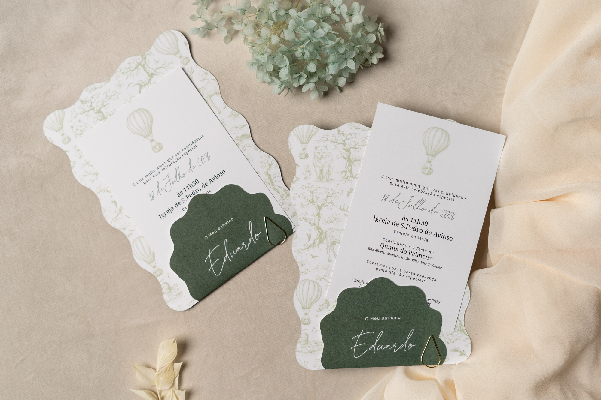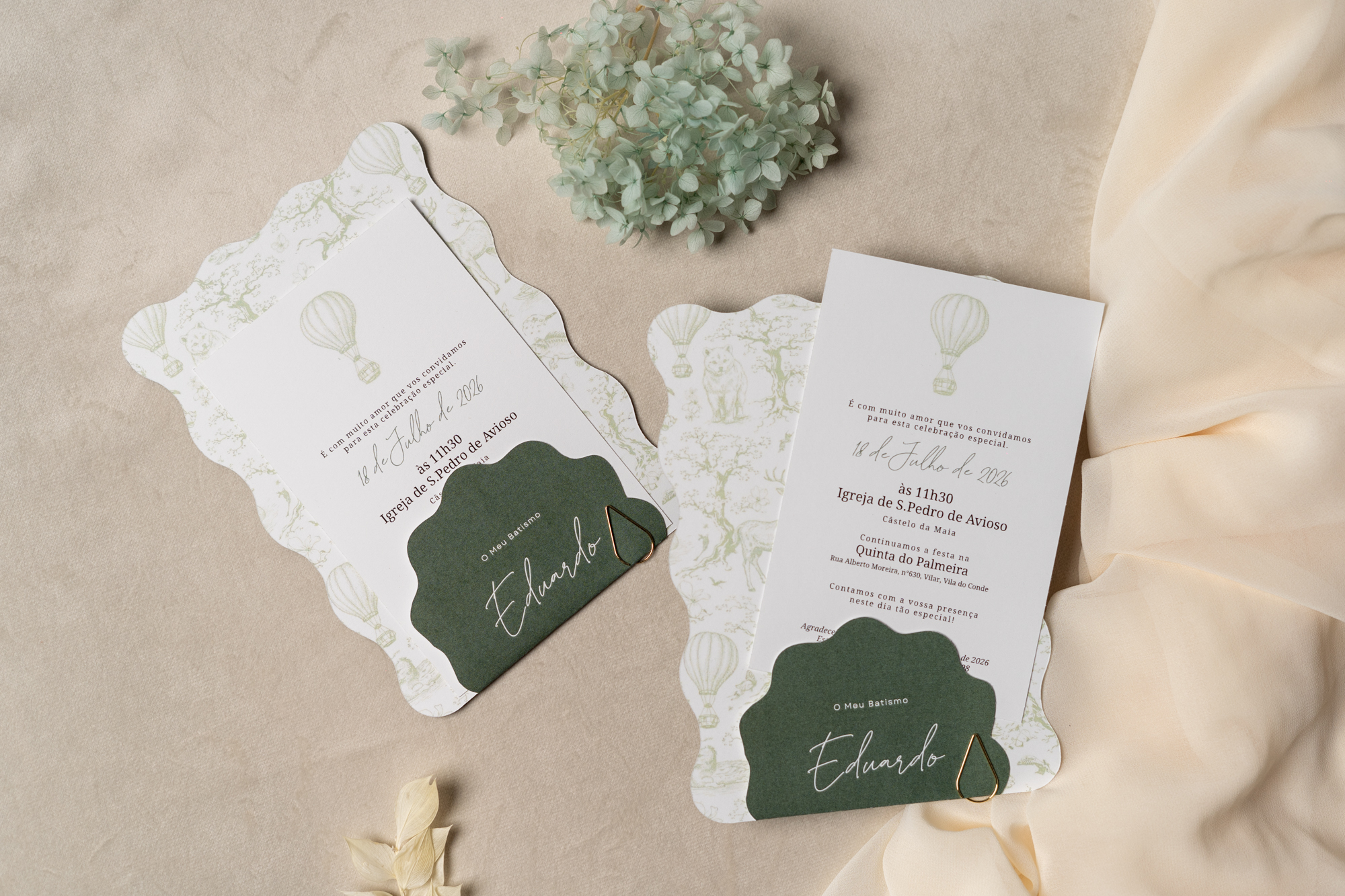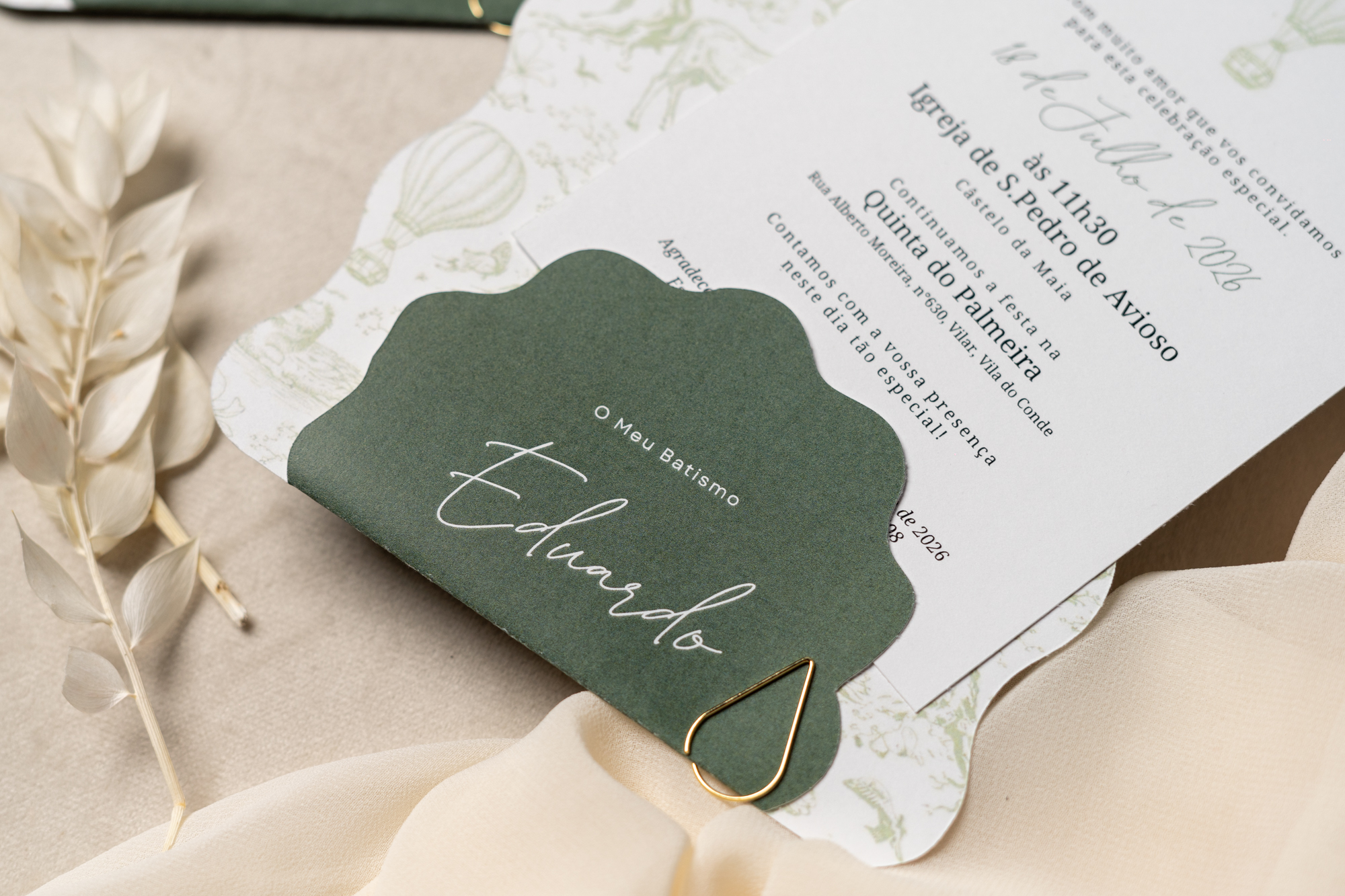 Assim, entendemos que o mérito pelo Batismo é seu, mas que a missão é nossa. E, por isso, criamos um convite único e adaptado ao gosto de cada cliente, cumprindo sempre com a qualidade e perfeição e bom gosto.