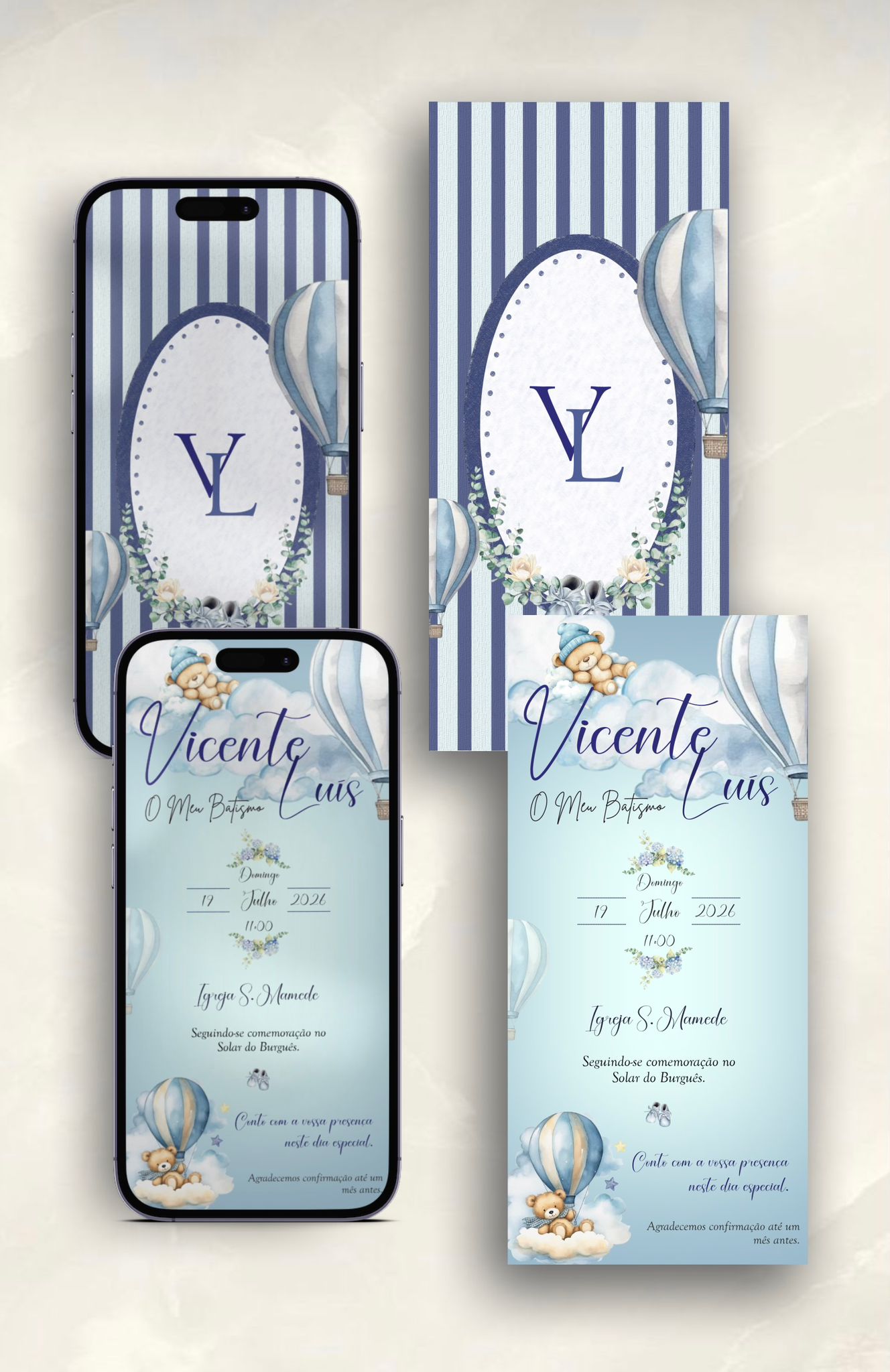 Cada convite é criado especialmente para ti e pode ser personalizado com: