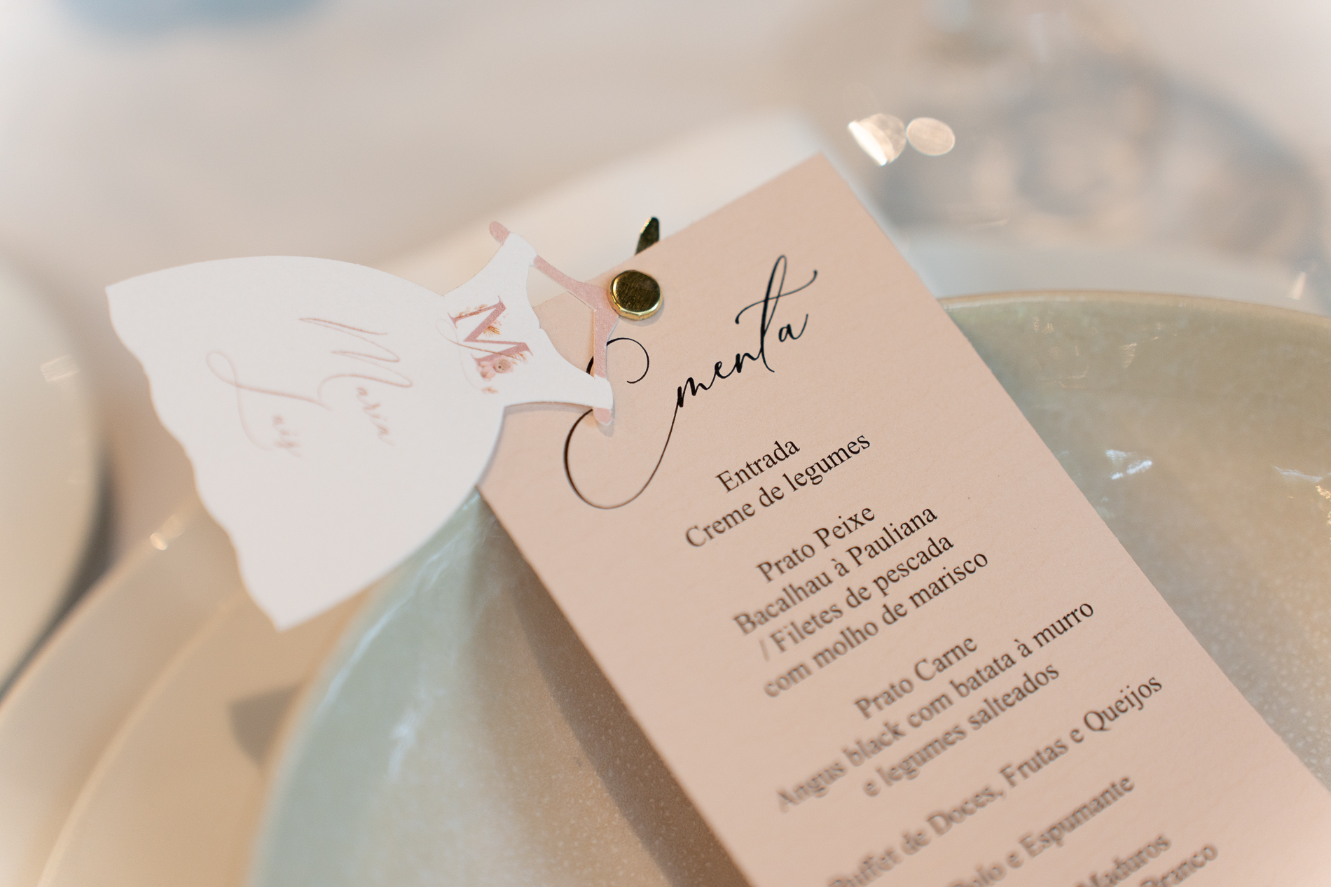 Assim, combine já o design da sua Menu e Marcador Lugar Batizado com o ambiente que quer apresentar aos seus convidados no dia.