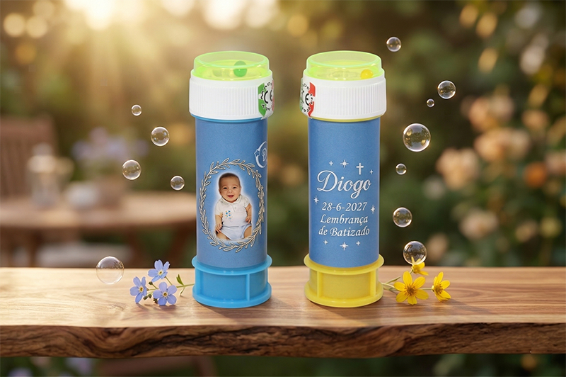 Assim, combine já o design do seu Lembrança Batismo Bolinhas Sabão com o ambiente que quer apresentar aos seus convidados no dia.