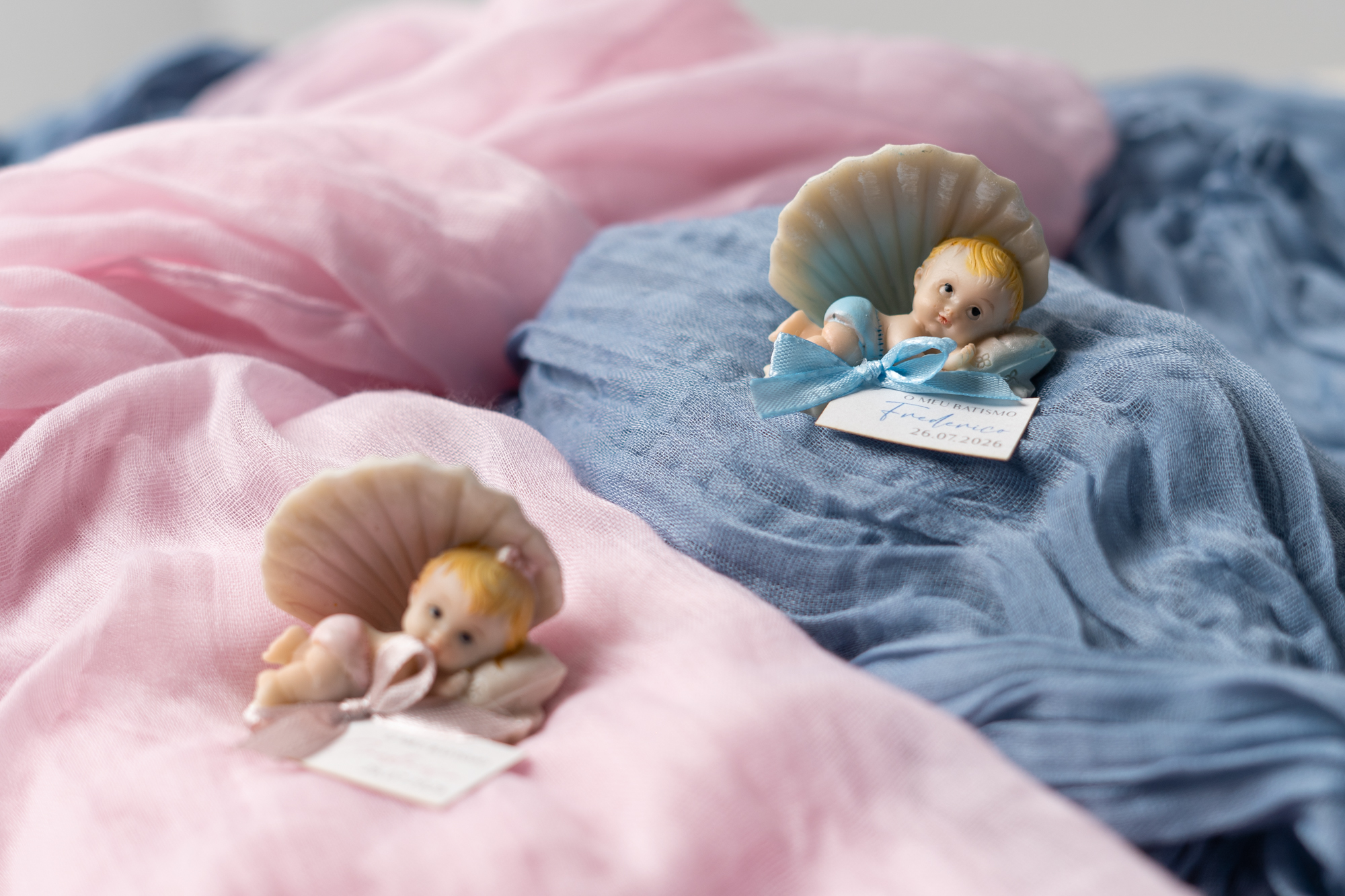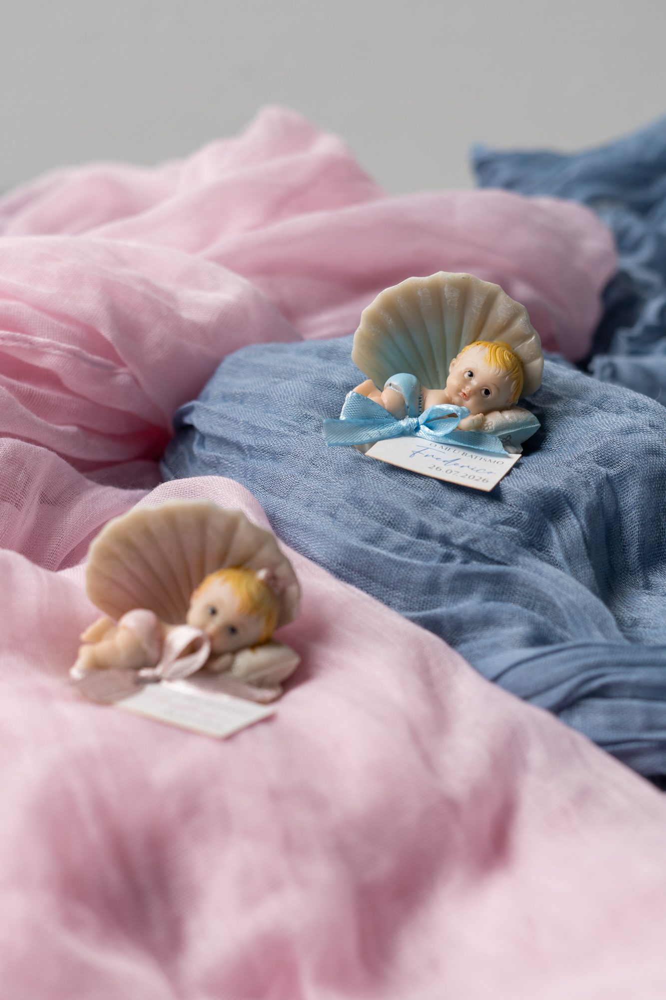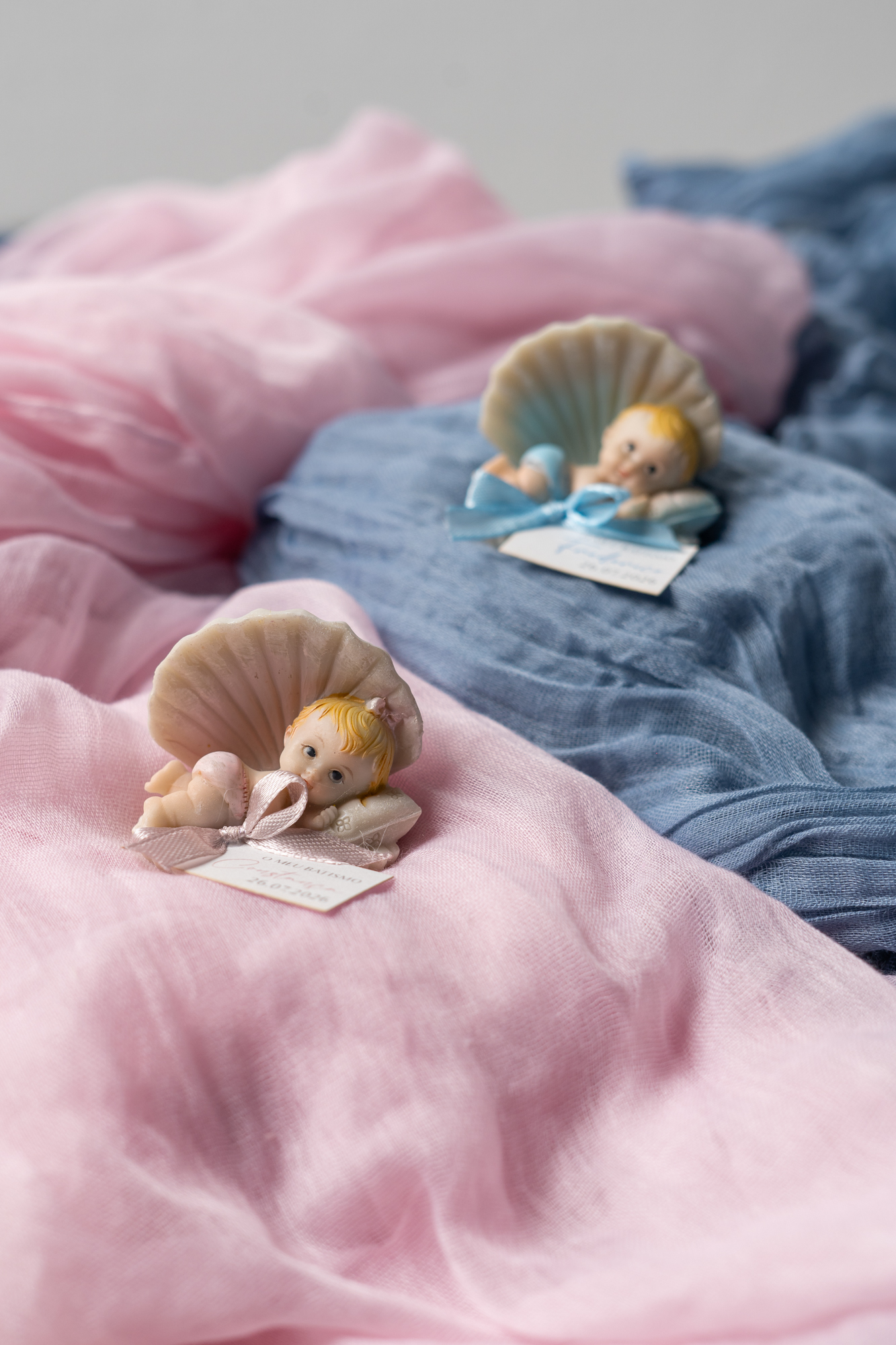 Temos brindes de todas as formas e cores e materiais e também a todos os preços. Além disso, a nossa Lembrança Batizado Concha Bebé é feita cá, já que é o que nos dá o controlo sobre o prazo de produção.