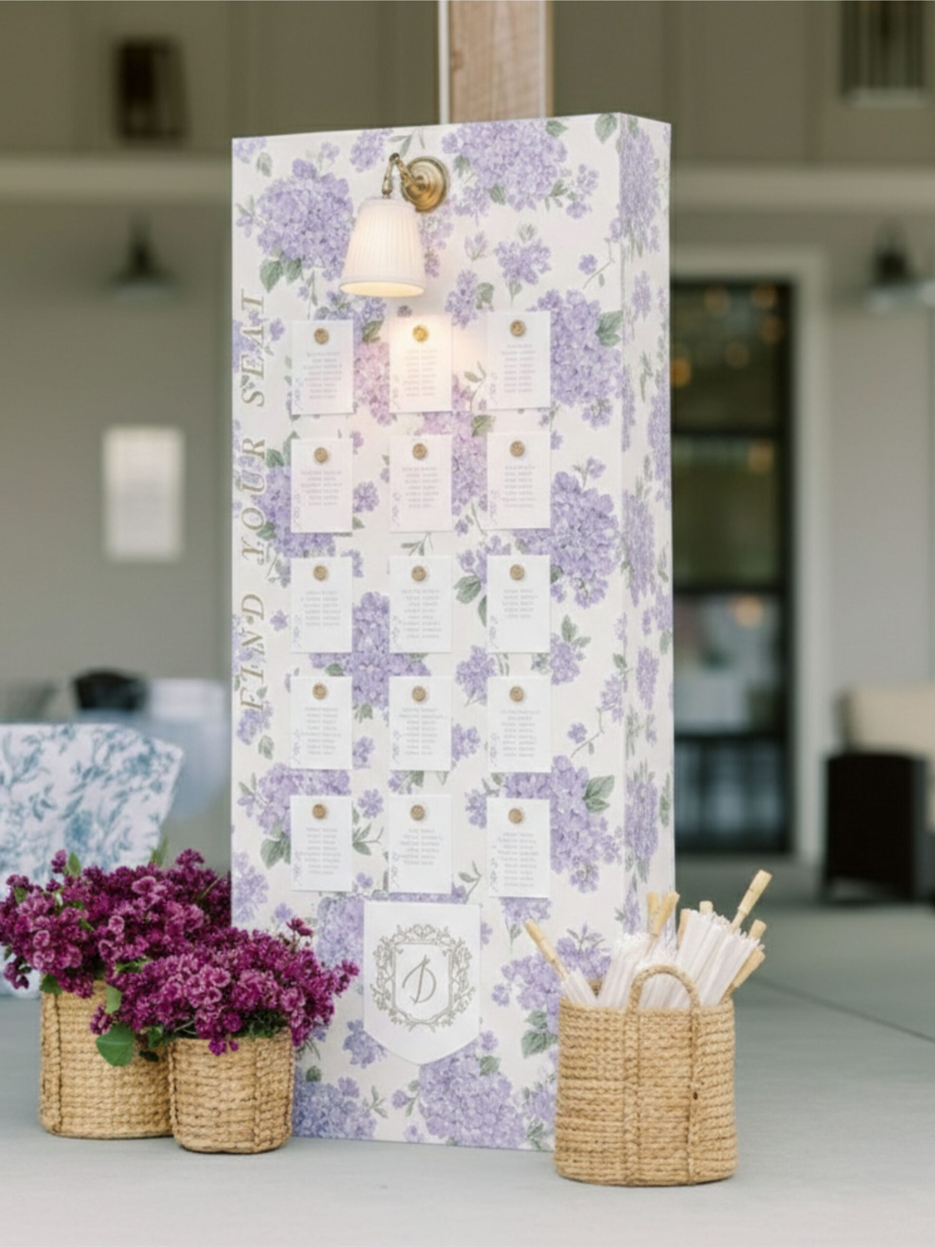 Assim, combine já o design do seu Placard Quadro Mesas Lilás com o ambiente que quer apresentar aos seus convidados no dia.
