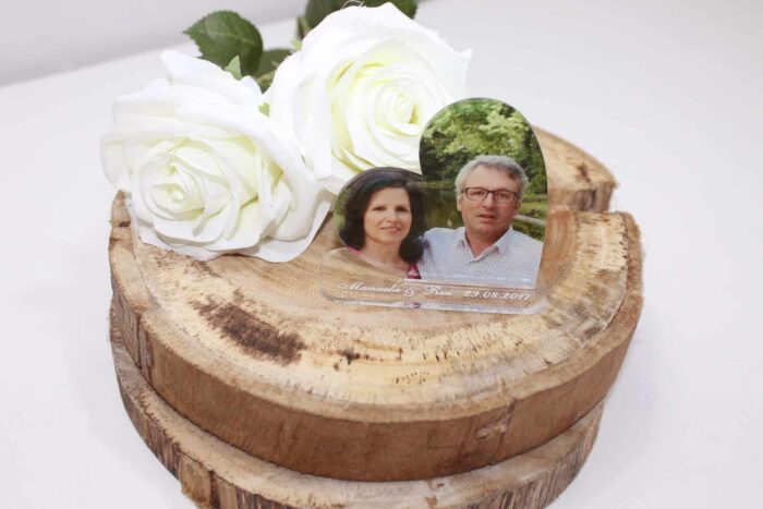 Lembrança Bodas Ouro Acrílico, impresso com foto.