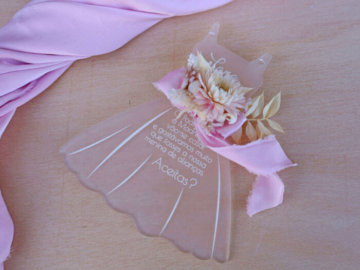 Convite Vestido Menina Alianças com travessão para a menina poder usar no dia do Casamento