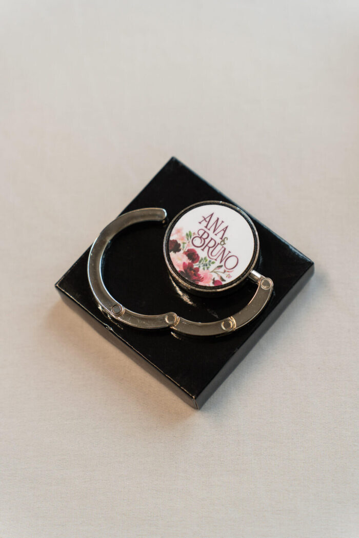 Lembrança Casamento Suporte Bolsa com autocolante na peça.