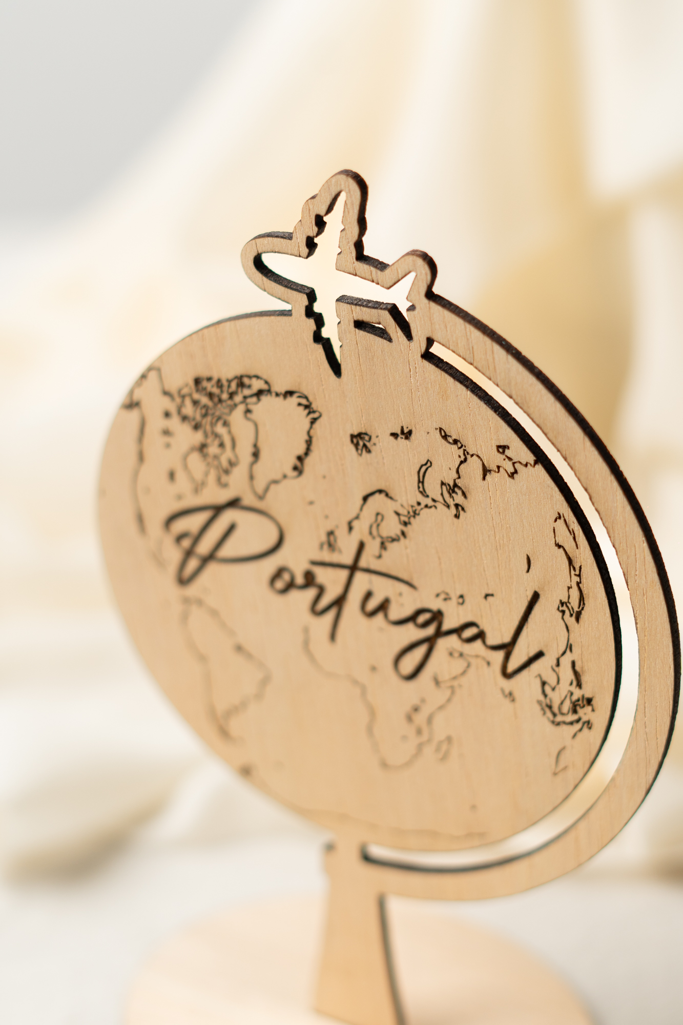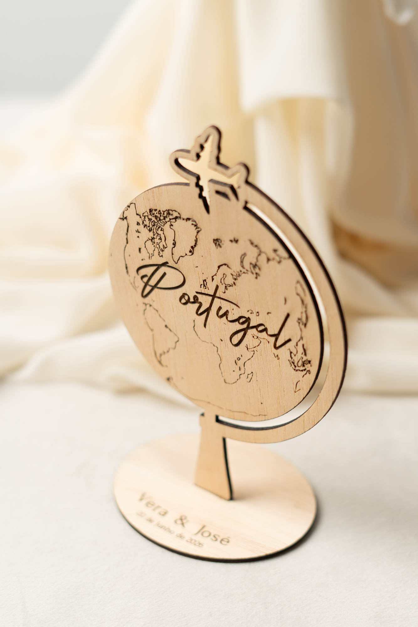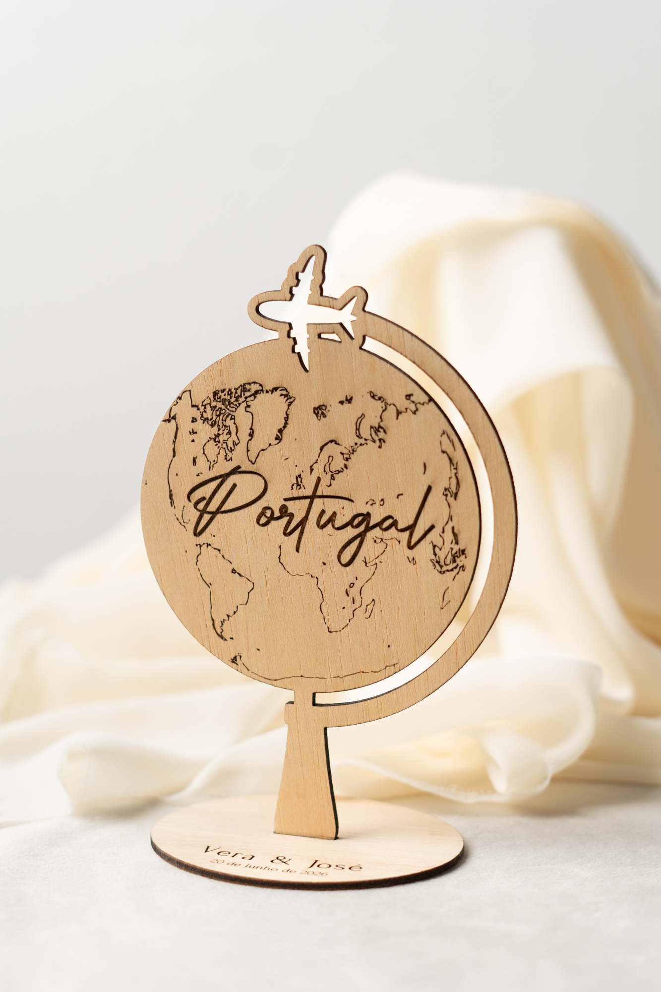 Marcador Mesa Casamento Globo em Madeira