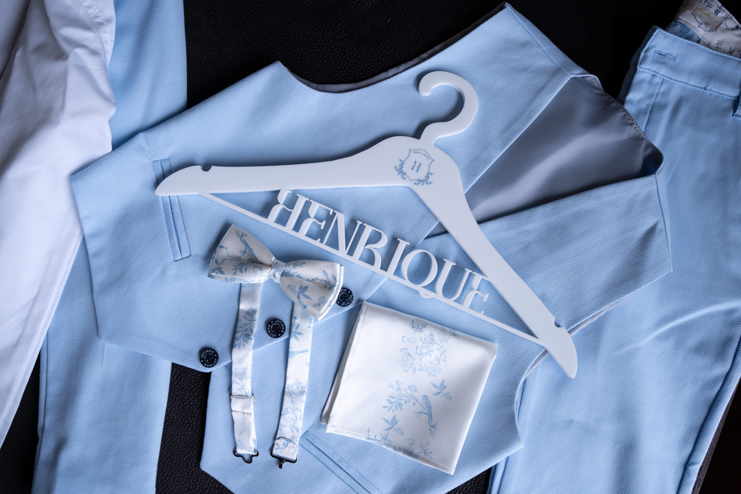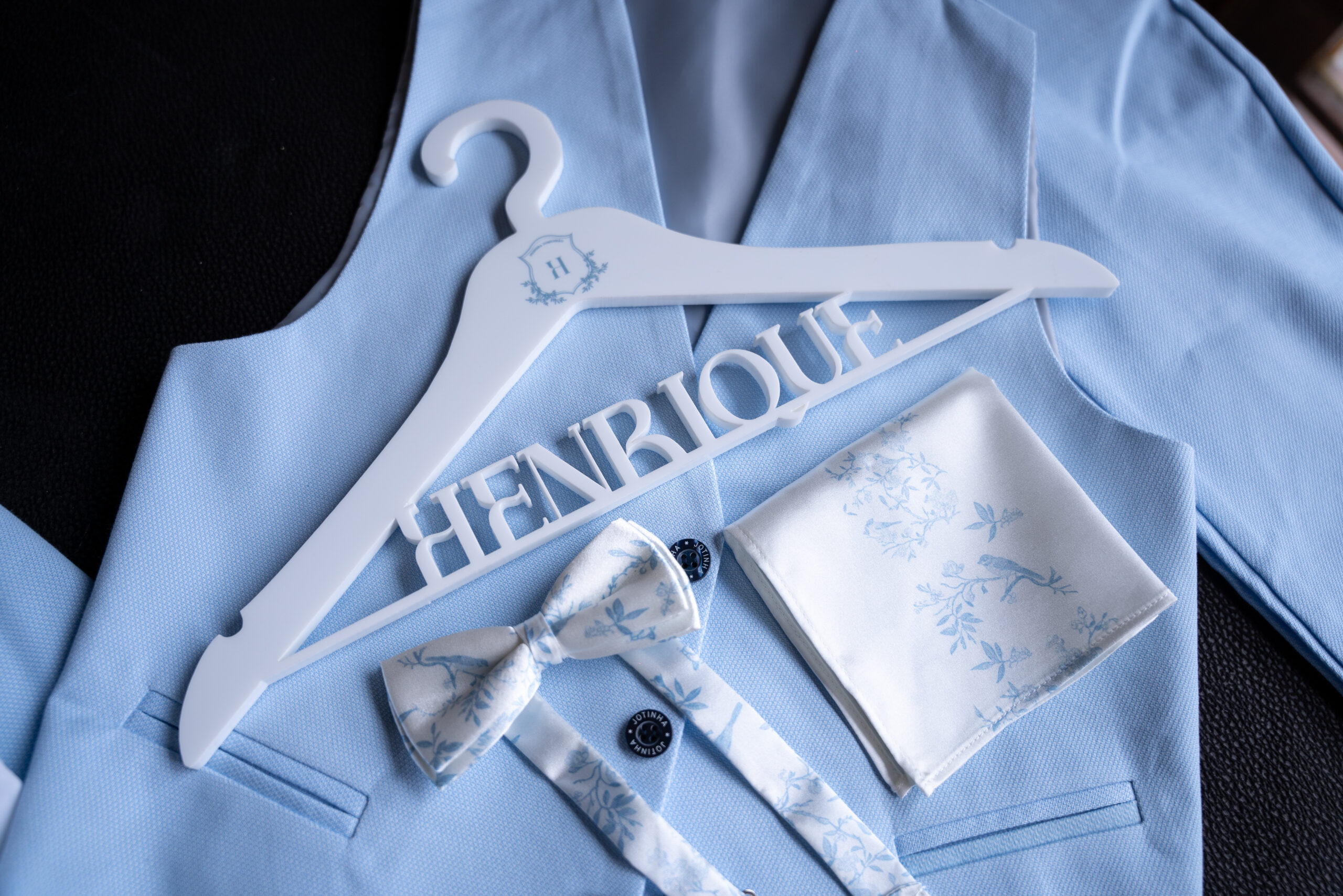 O cabide destaca o vestido ou fato da criança, tornando cada registo fotográfico mais harmonioso e profissional.