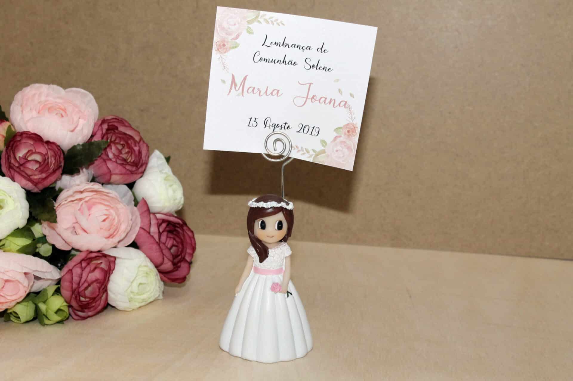 - Portanto encontre na Loja Online da Miminhos Rita Catita a resposta para todos os pormenores que tornarão a sua festa de Comunhão única: Convites, Lembranças, Lembranças especiais para padrinhos e para avós, Livros de Honra, Placards, Ementas, Marcadores de Mesa, Cestas de Lembranças, argolas de guardanapo. Mas também Caixas para guardar prendas em dinheiro, talheres e flutes personalizados Topos de Bolo e Lembrança Comunhão Menina Foto.