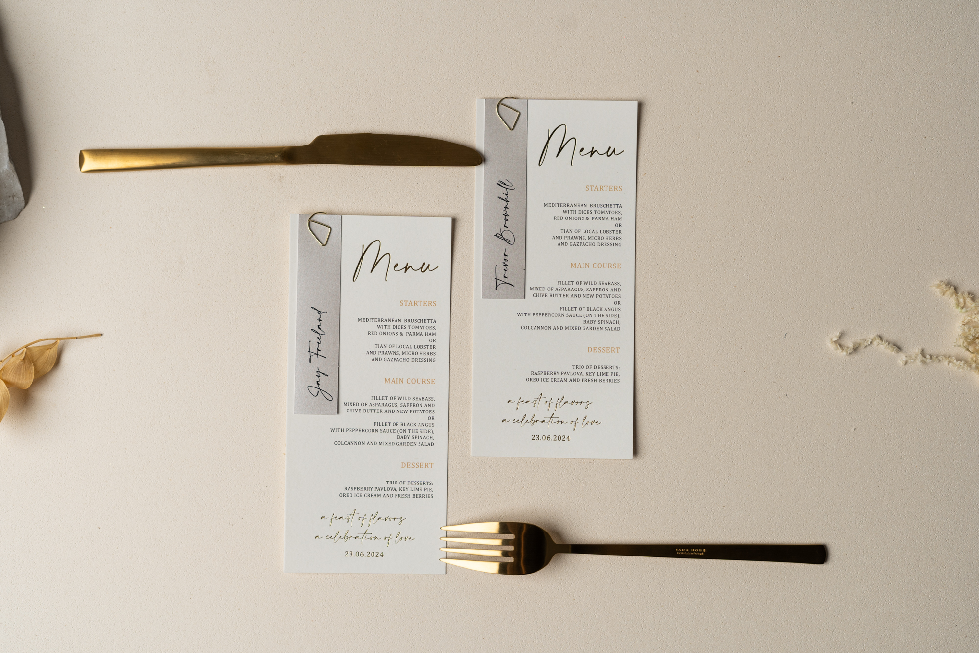 On dit que le secret est dans les détails... Et nous y croyons ! Dans notre boutique, les menus de mariage sont l'un de nos détails préférés.