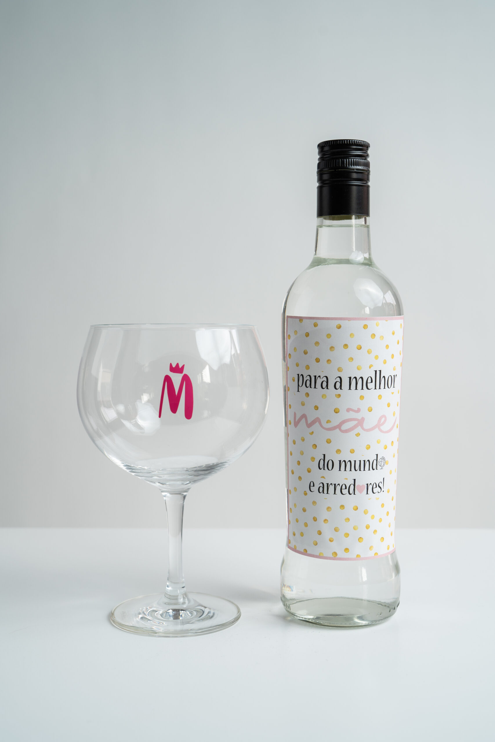 Gin Especial Presente Mãe (caixa com autocolante personalizado + Copo Gin com autocolante (sai com a lavagem) + garrafa Gin com autocolante)